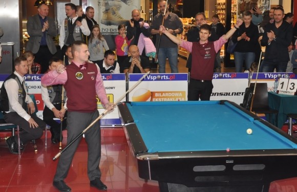 Dwie ostatnie kolejki Bilardowej Ekstraklasy zostały rozegrane w kieleckiej Galerii Echo. W sobotę Nosan Kielce pokonał drużynę ERG Bieruń Folie DSB Lubin 14-9, dzięki czemu zajmująca drugą pozycję w tabeli drużyna utrzymała swoje szanse na zdobycie tytułu mistrzowskiego. Lider, Konsalnet Warszawa pewnie pokonał Metal Fach LP Sokółka 14-7.