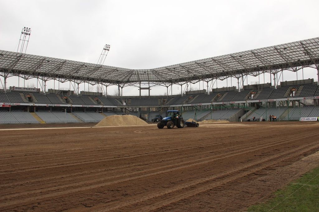 W piątek przyjechało 8 tirów z trawą ze Szczecinka, w sobotę ma dojechać 13, a ostatnie w niedzielę. Prace mają zostać zakończone w poniedziałek do południa.
