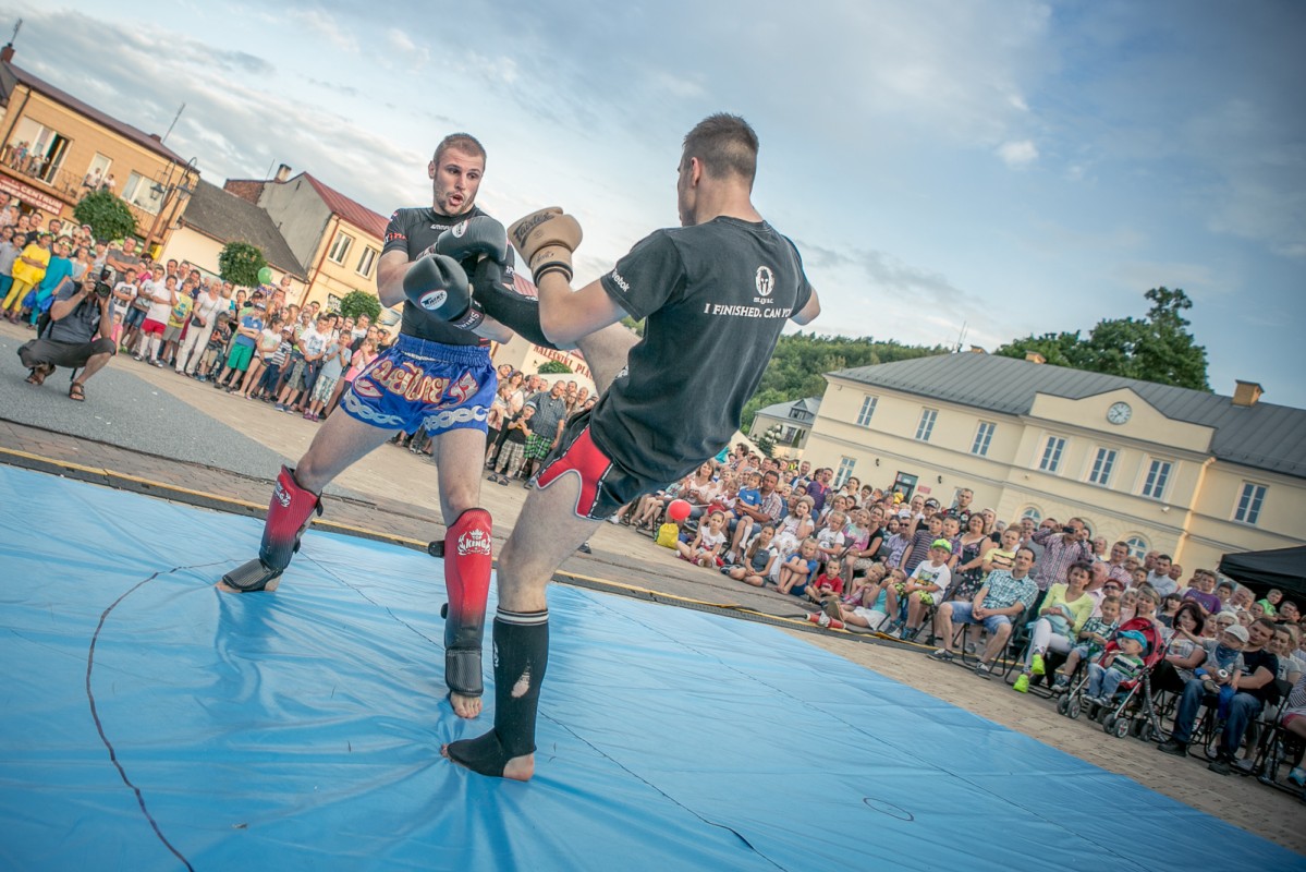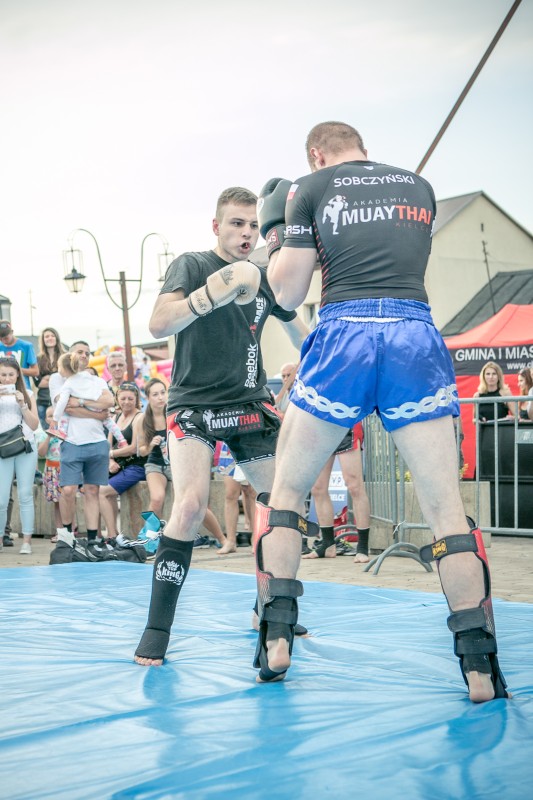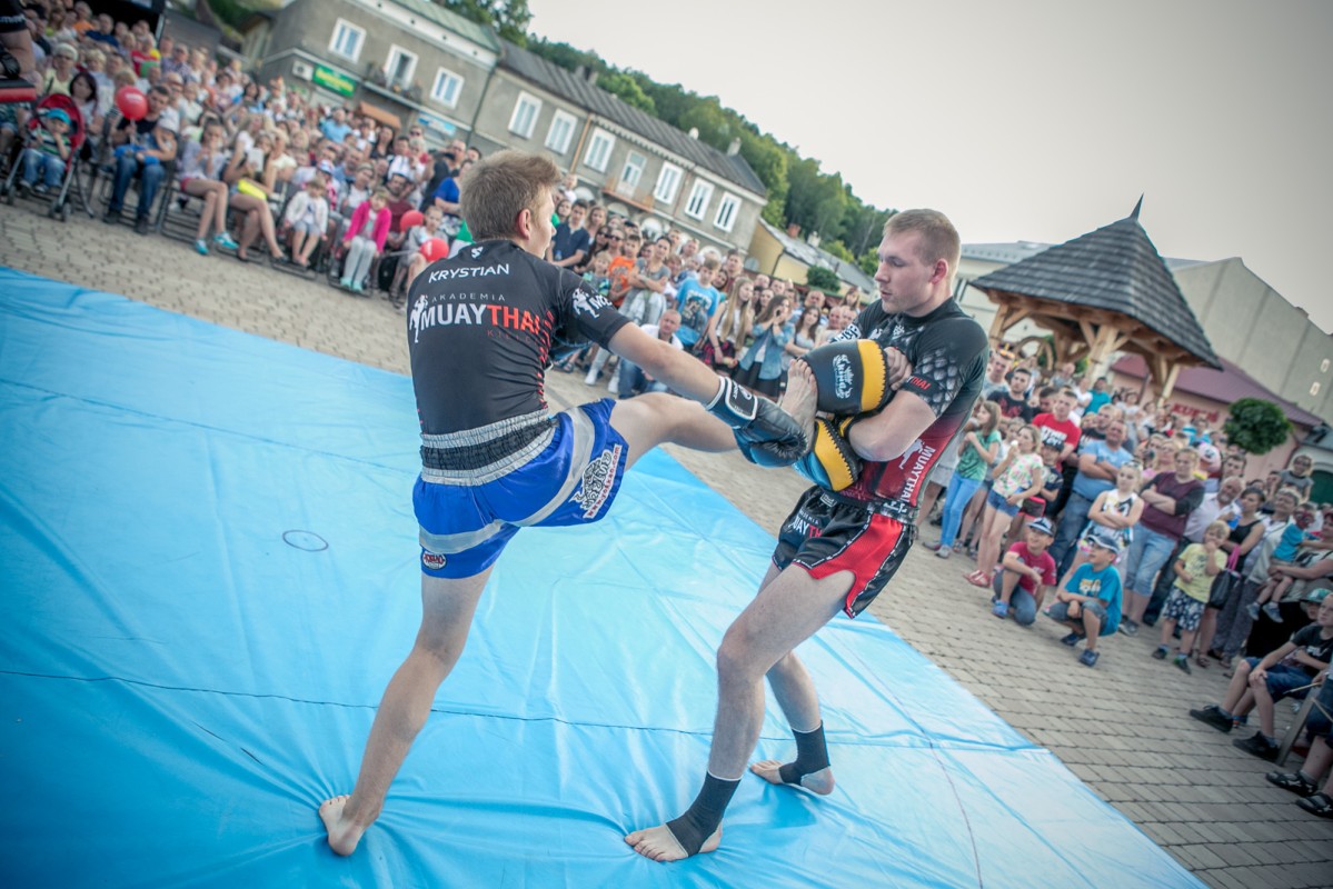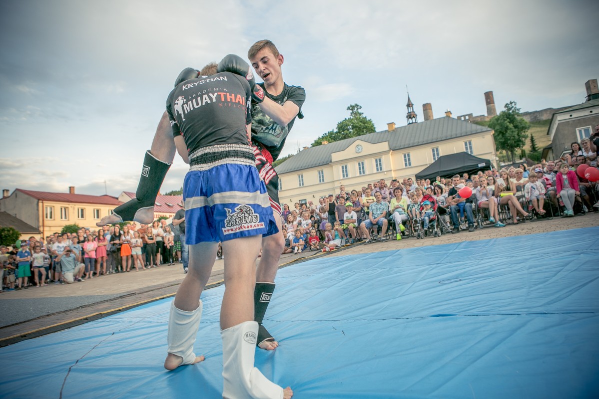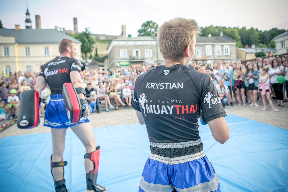 Sezon na pokazy sportowe i artystyczne na świeżym powietrzu rozpoczął się na dobre. Coraz częściej swoje umiejętności na imprezach regionalnych pokazują przedstawiciele Akademii Muay Thai Kielce, którzy w ostatni weekend zawitali do Chęcin. Na odnowionym rynku, z pięknymi ruinami zamku w tle, wystąpili tuż przed koncertem zespołu De Mono.