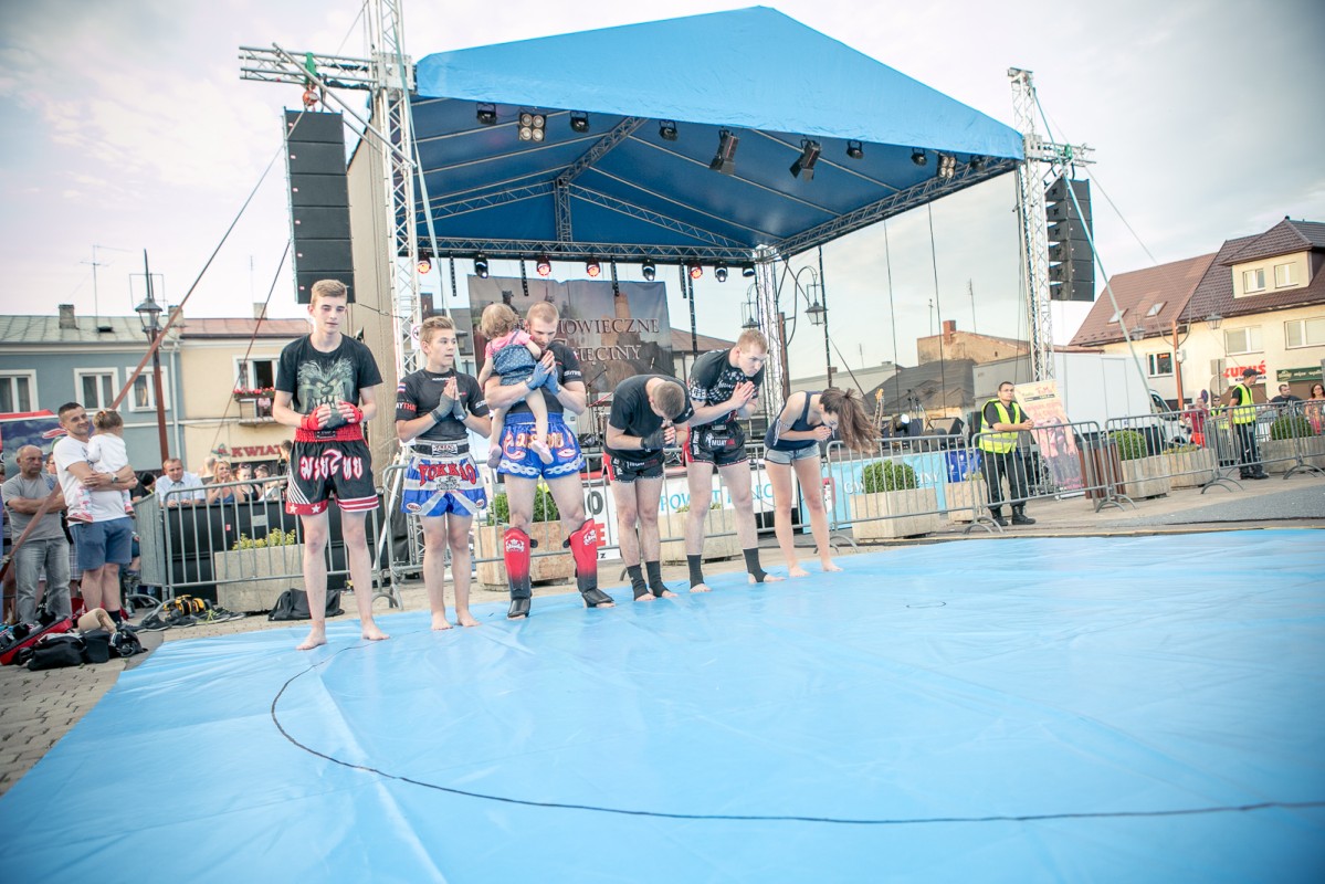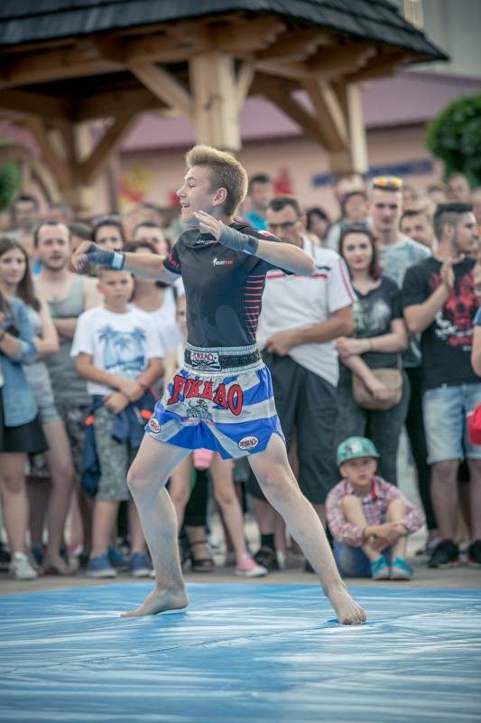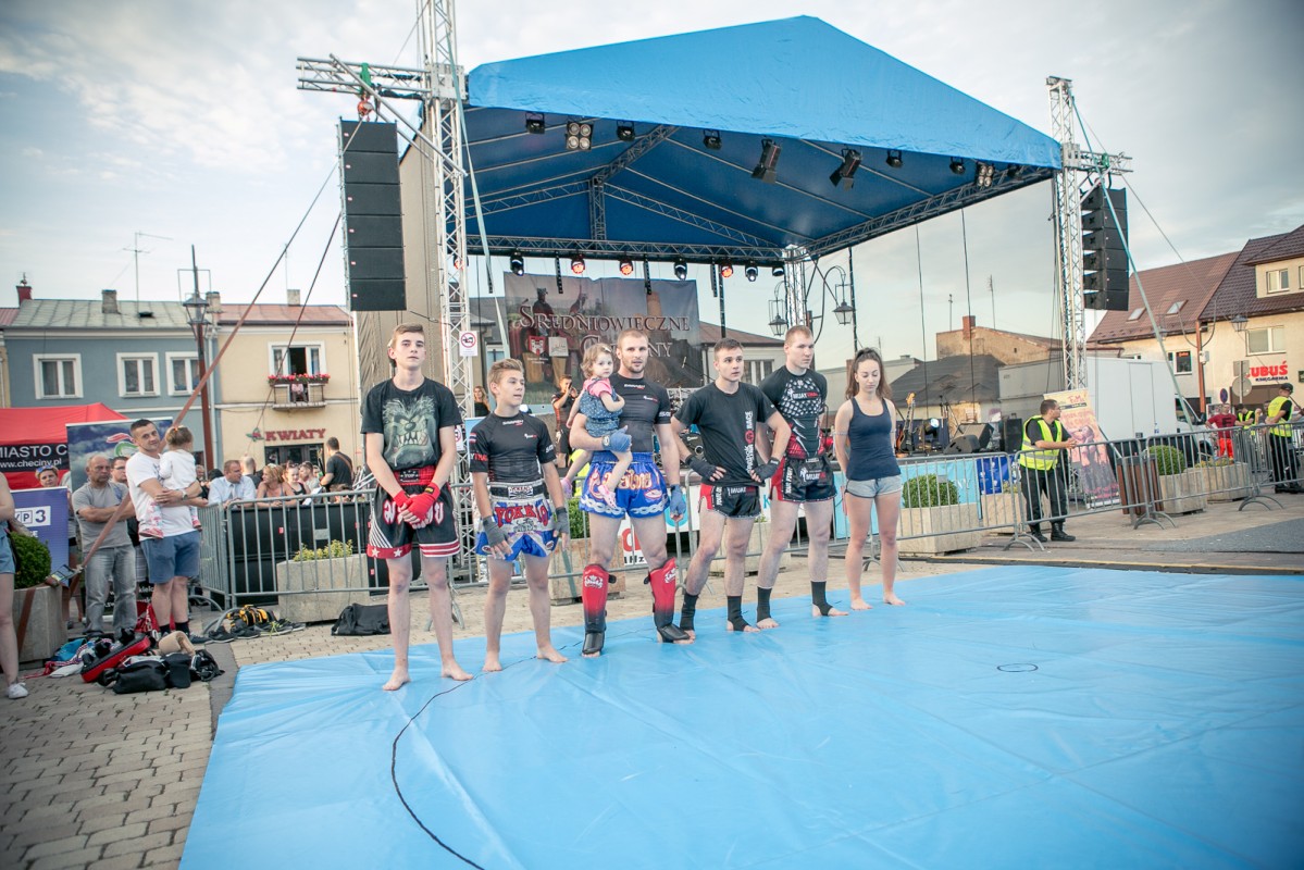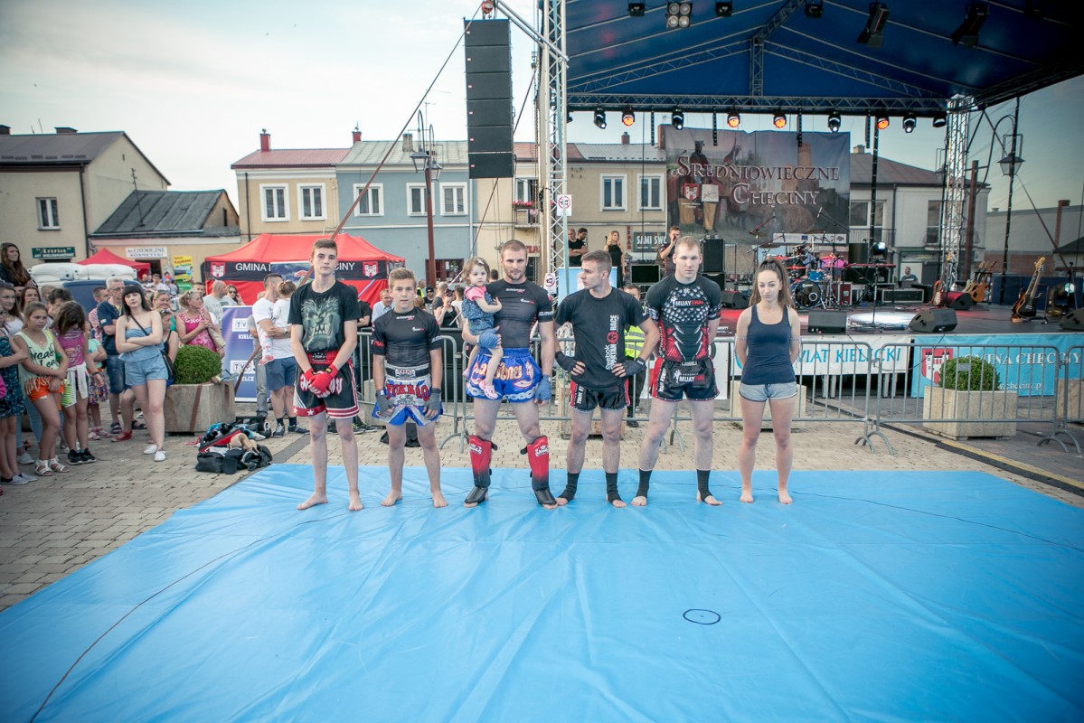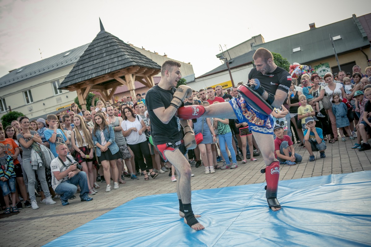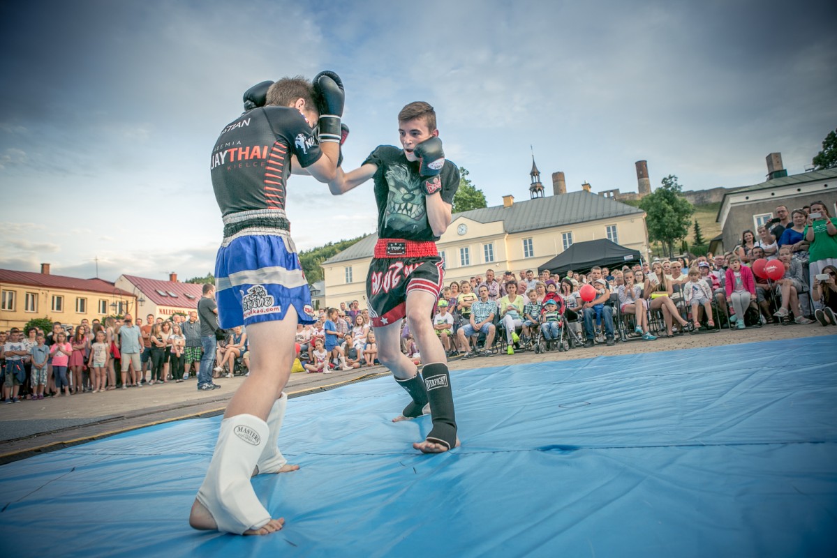 Sezon na pokazy sportowe i artystyczne na świeżym powietrzu rozpoczął się na dobre. Coraz częściej swoje umiejętności na imprezach regionalnych pokazują przedstawiciele Akademii Muay Thai Kielce, którzy w ostatni weekend zawitali do Chęcin. Na odnowionym rynku, z pięknymi ruinami zamku w tle, wystąpili tuż przed koncertem zespołu De Mono.