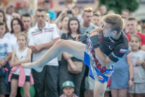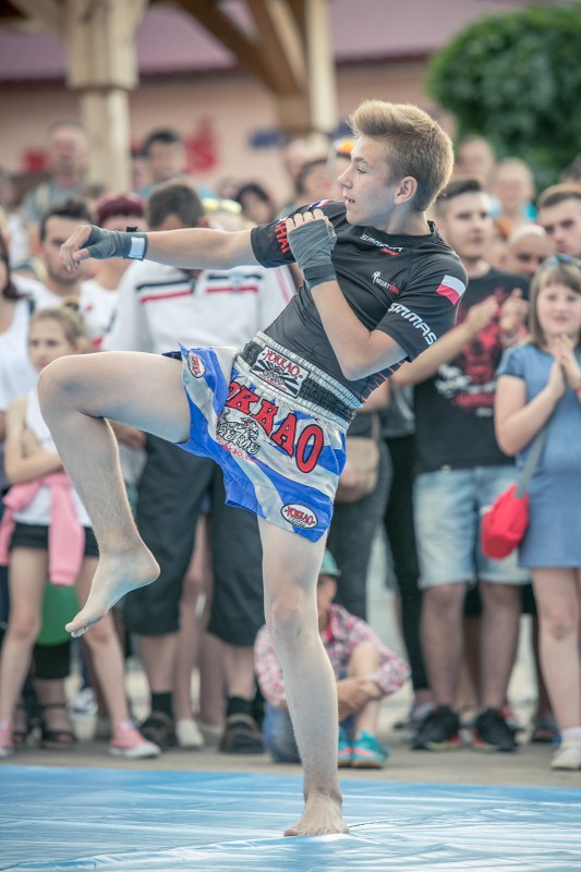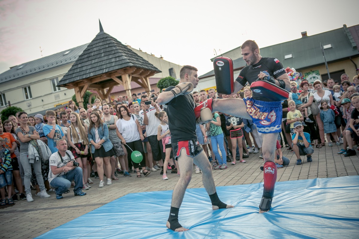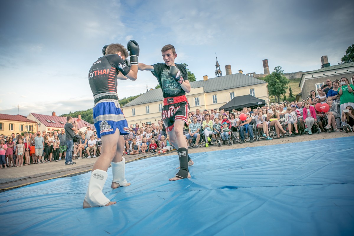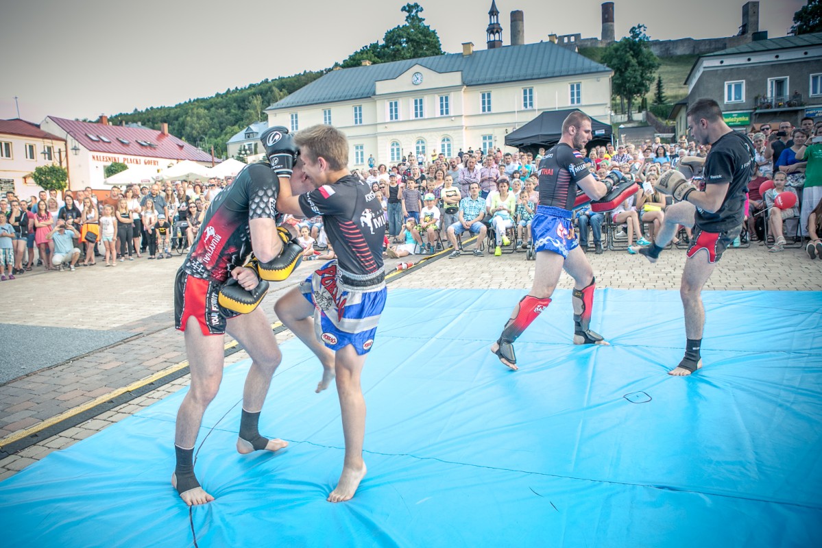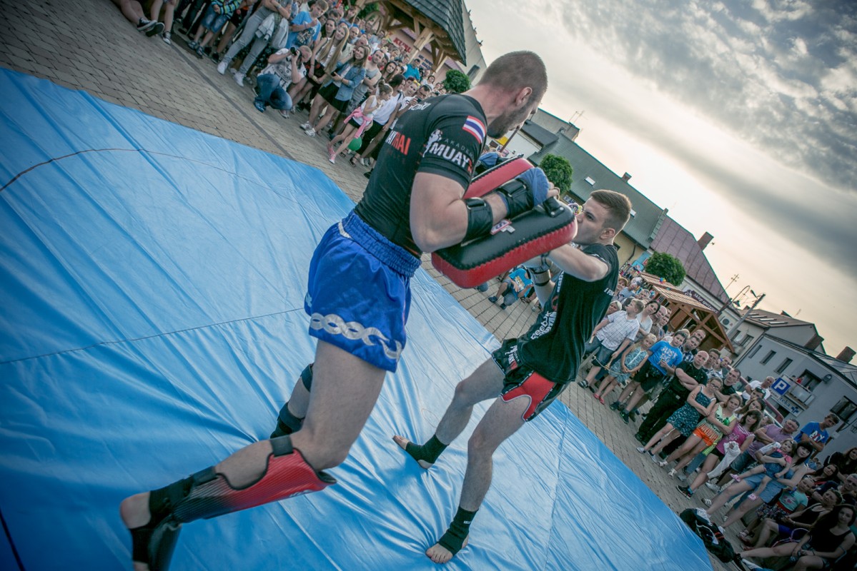 Sezon na pokazy sportowe i artystyczne na świeżym powietrzu rozpoczął się na dobre. Coraz częściej swoje umiejętności na imprezach regionalnych pokazują przedstawiciele Akademii Muay Thai Kielce, którzy w ostatni weekend zawitali do Chęcin. Na odnowionym rynku, z pięknymi ruinami zamku w tle, wystąpili tuż przed koncertem zespołu De Mono.