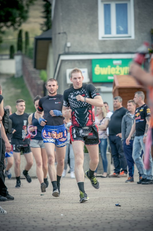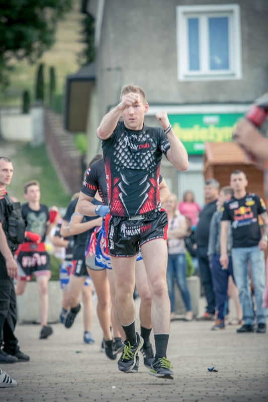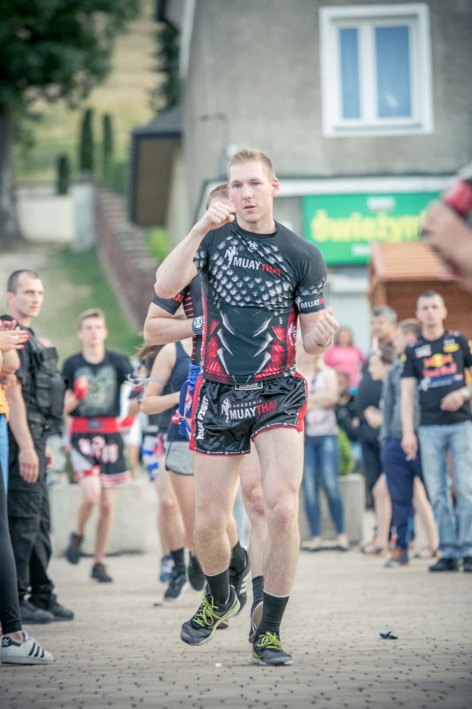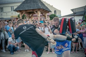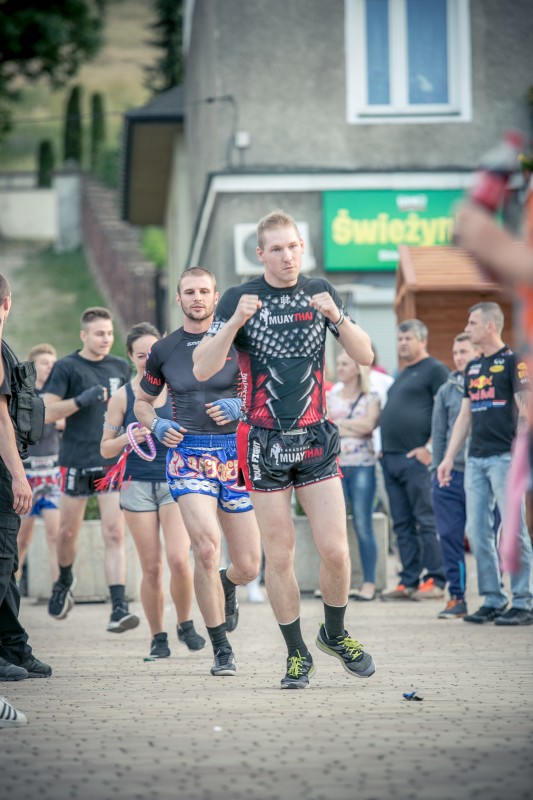 Przy ostrych dźwiękach Fuel zespołu Metallica, trener Bartek Miniszewski i Piotr Sobczyński tarczowali jednocześnie poszczególnych zawodników, prezentując zarówno pełny wachlarz uderzeń i ciosów występujących w boksie tajskim, jak i specyfikę tempa treningu w tej dyscyplinie sportu.