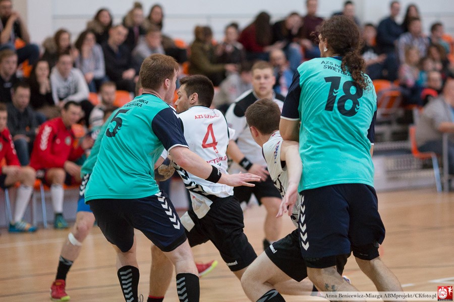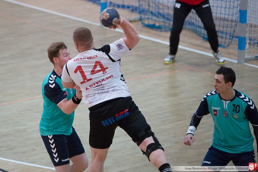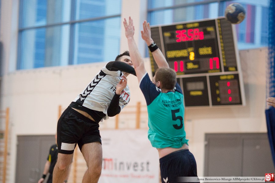 Zwycięstwem AZS-u Politechniki Świętokrzyskiej 30:25 zakończyły się sobotnie derby Kielc. Gospodarze, zawodnicy AZS-u UJK stoczyli na parkiecie zacięty bój, ale tego dnia musieli uznać wyższość swoich przeciwników. To wszystko na swoich zdjęciach uwieczniła niezawodna Anna Benicewicz-Miazga - zachęcamy do obejrzenia fotorelacji.