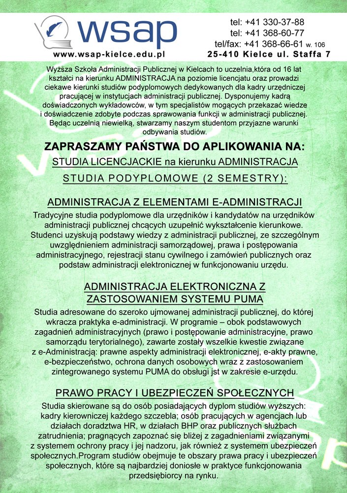Wyższa Szkoła Administracji Publicznej w Kielcach - oferta w pigułce