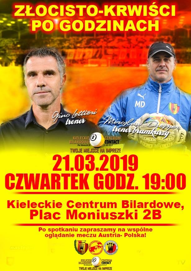 Wyjątkowe wydarzenie organizują Stowarzyszenie Kibiców Korony Kielce oraz sam klub. Już w przyszły czwartek, 21 marca, kibice Korony będą mieli okazję do samodzielnego przepytania i porozmawiania z trenerem drużyny, Gino Lettierim. To wszystko w ramach kolejnego spotkania z cyklu "Żółto-czerwoni po godzinach". Razem z włoskim szkoleniowcem, obecny będzie także trener bramkarzy kieleckiego klubu, Mirosław Dreszer.
