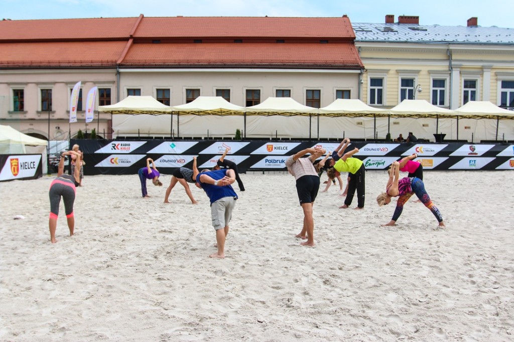 Za nami kolejna odsłona Ogólnopolskiego Festiwalu Sportów Plażowych – Kielce 2019. Obok takich dyscyplin jak Beach Soccer, czy siatkówka plażowa, nie mogło na białym piasku zabraknąć miejsca na… fitness. Na początek Magdalena Piasecka poprowadziła zajęcia z Jogi.