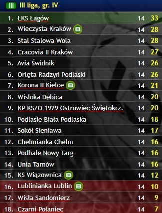 Za nami 14. kolejka na trzecioligowych boiskach. Tam rządzi i dzieli ŁKS Łagów. Piłkarze z powiatu kieleckiego powiększyli przewagę nad Wieczystą Kraków. Punkty straciła za to druga drużyna Korony Kielce.