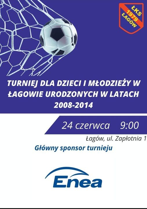 W najbliższą sobotę 24 czerwca w Łagowie odbędzie się turniej piłkarski pod patronatem firmy ENEA. Udział mogą w nim wziąć młodzi adepci futbolu urodzeni w latach 2008–2014.