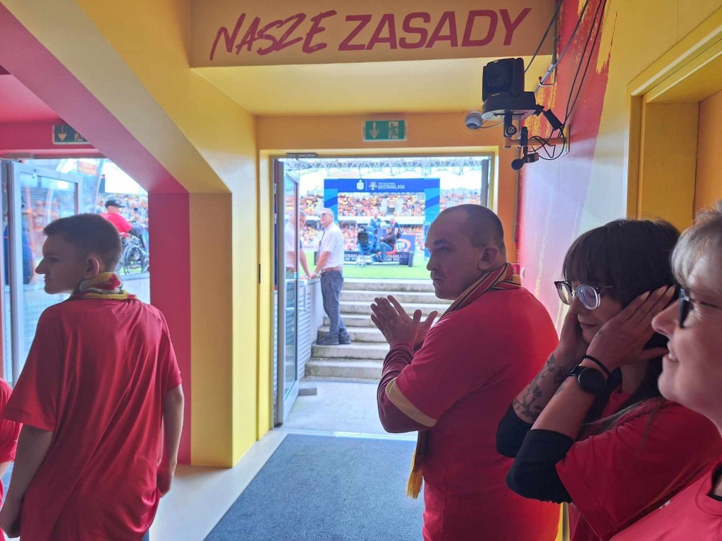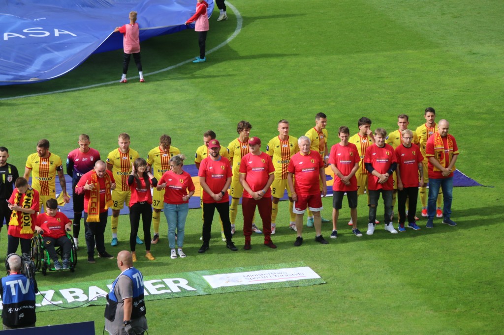 Jak informowaliśmy kilkanaście dni temu (TUTAJ) jedno z działań DOGadanki KKN Kielce będzie miało miejsce podczas starcia Korony Kielce z Zagłębiem Lubin. Tak też się stało i kibice z niepełnosprawnościami eskortowali piłkarzy przed meczem, wspólnie pokazując brak barier na murawie przed pierwszym gwizdkiem sędziego. W sumie 25 osób miało możliwość wyprowadzać piłkarzy i arbitrów na pojedynek Korony z „Miedziowymi”. Miało to miejsce nie po raz pierwszy. Jak zapewnili nas przedstawiciele stowarzyszenia dla osób biorących udział to zawsze wielkie przeżycie i wspomnienia, o których długo nie zapomną. Sporą grupę stanowili piłkarze ekstraklasowej drużyny futsalu bez barier DOGadanka KKN Kielce.