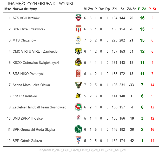 Tabela I ligi grupy D