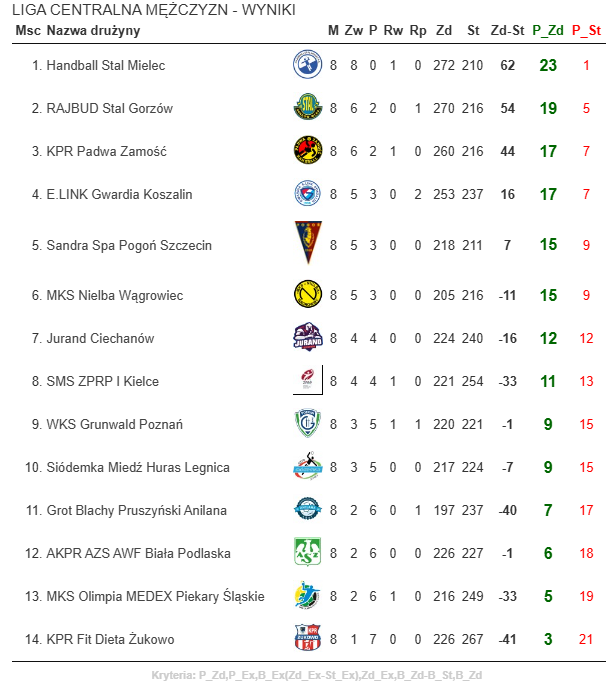 Tabela Ligi Centralnej Mężczyzn