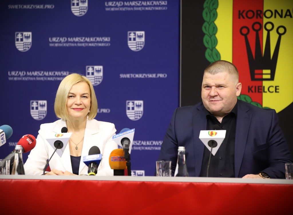 – To dla nas ogromny zaszczyt, że kolejne wsparcie kierujemy na najbardziej popularną dyscyplinę sportu, jaką jest piłka nożna. Korona Kielce występuje w Ekstraklasie, więc uznaliśmy jako samorząd województwa, że wesprzemy klub, aby z wykorzystaniem narzędzi marketingu sportowego promować nasze piękne województwo. Ustaliliśmy warunki umowy, która opiewa na 700 tysięcy złotych i mamy nadzieję, że będzie to wspaniała promocja. Drużyna jest rozpoznawalna na poziomie ogólnopolskim, mam nadzieję, że pod przewodnictwem Pana Prezesa zawodnicy będą się rozwijać i będą nas promować za granicami naszego kraju. Wierzę w to z całego serca. Cieszymy się z tego, że będzie to kolejna dyscyplina, która promuje nasz region. Prezesowi dziękuję, za to, że podjął się tego wyzwania, my będziemy wspierać na tyle, na ile możemy. Jeżeli budżet na to pozwoli to sukcesywnie będziemy zwiększać środki. Zależy nam na tym, aby nasze dzieci i młodzież mogły rozwijać swoje pasje sportowe, dlatego też inwestujemy w piłkę ręczną, nożną, boks oraz kolarstwo – wskazała Renata Janik.