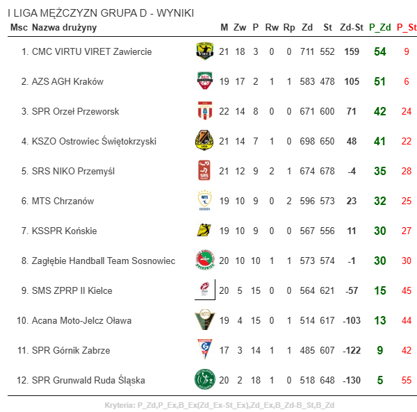 Tabela I Liga Mężczyzn Grupy D po 24. kolejce: