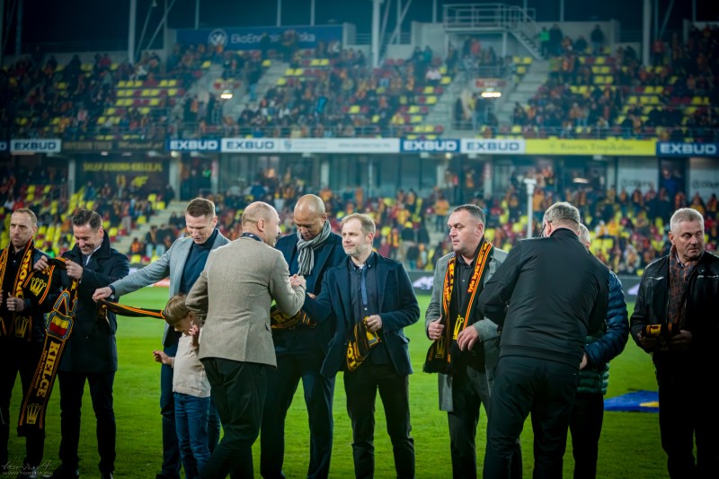 Już od godziny 19.30 na dziedzińcu stadionu panowała atmosfera przypominająca czasy sezonu 2005/2006. Tłumy kibiców czekały, by po latach znów zamienić słowo ze swoimi idolami. W centralnym punkcie wydarzeń pojawili się zawodnicy, którzy przed laty budowali siłę „żółto-czerwonych”. Autografy rozdawali i do pamiątkowych zdjęć pozowali Grzegorz Bonin, Przemysław Cichoń, Marcin Drzymont, Paweł Golański, Hernâni oraz Marcin Kośmicki.