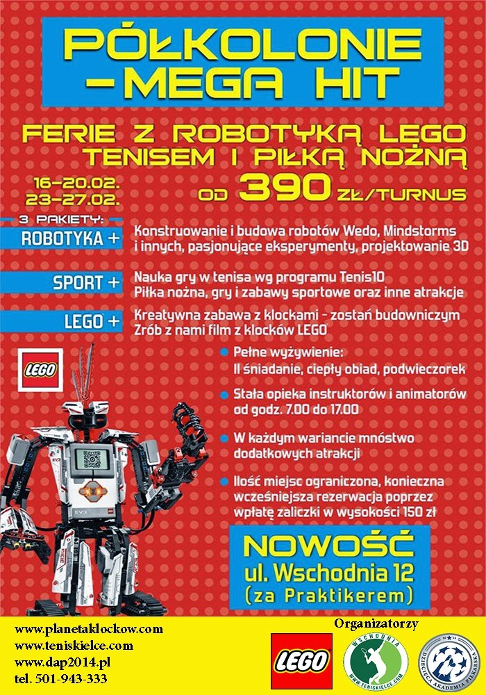 Czas zacząć planować ferie. Wspólnie z Planetą klocków oraz klubem tenisowym, Dziecięca Akademia Piłkarska 2014 przygotowała specjalną ofertę dla miłośników piłki nożnej, tenisa oraz klocków LEGO. Dla młodych zawodników DAP 2014 przygotowany został pakiet SPORT +, ale do wyboru możliwe są także inne opcje.
