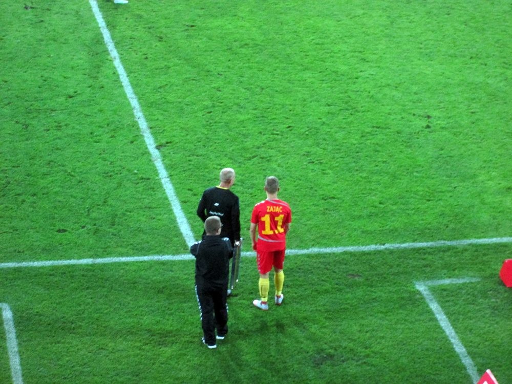 Walczył Piesio z Gabovsem. Łotysz faulowany, gramy. Szybka piłka na Przybyłę, ten wrzuca. Piłka spada na nogę Jovanovica, ale ten niecelnie.