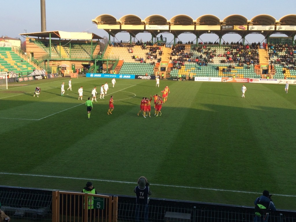 Bład Fertovsa, na skrzydle piłkę dostał Piesio i kapitalnie dograł do Świerczoka, który z najbliższej odległości pokonał Małkowskiego.