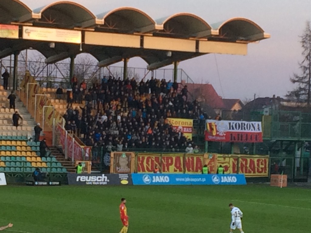 Są i kibice Korony, którzy mieli jakieś problemy przy wejściu, ale już są i głośno dopingują.