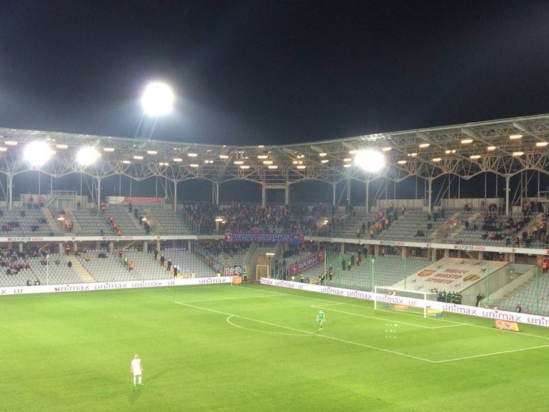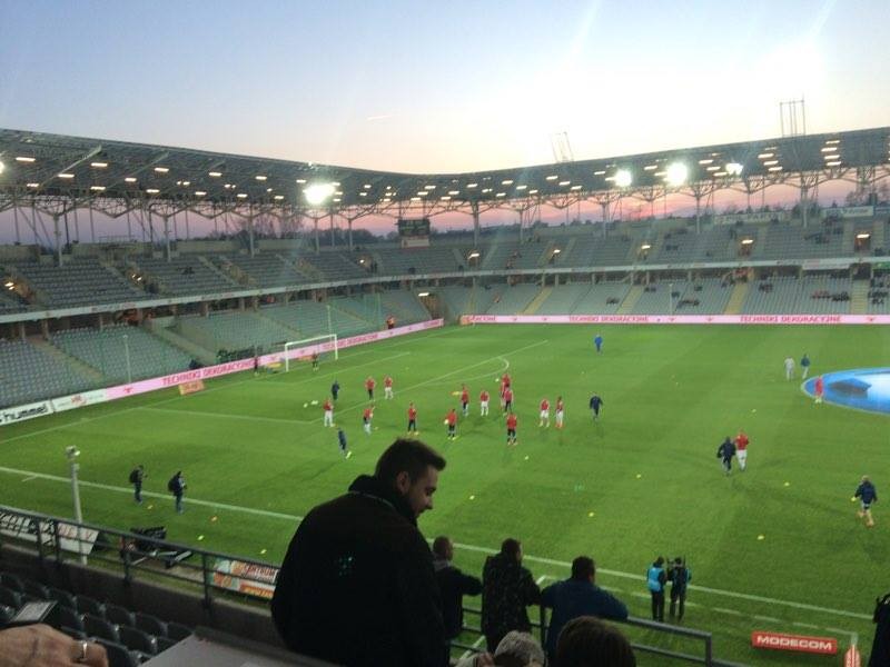 Cały stadion na stojąco, jest doping. Naprawdę głośny.