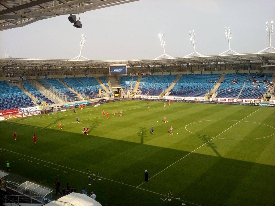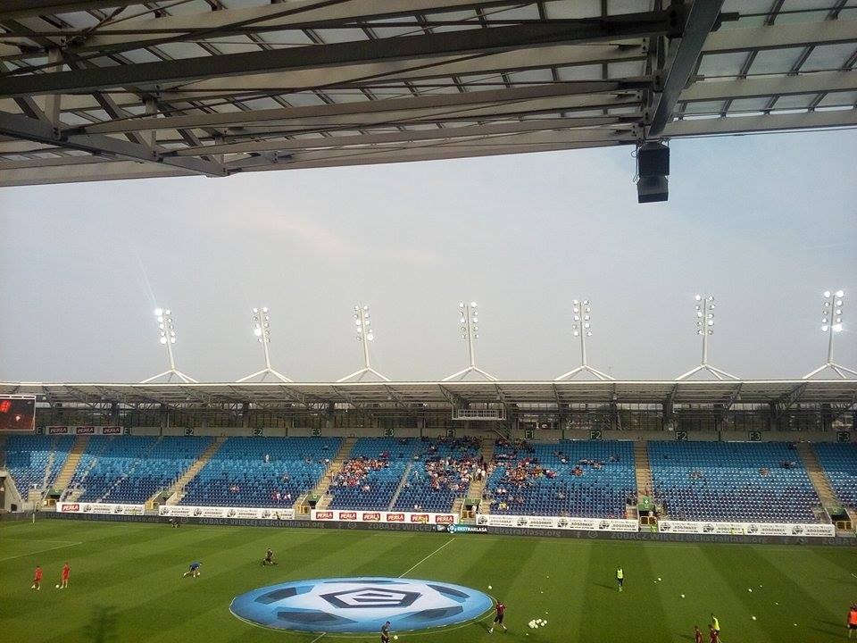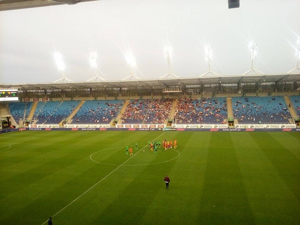 Z głośników dobiega hymn Górnika Łęczna śpiewany przez Krzysztofa Cugowskiego. Na trybunach cisza... Czepiamy się, ale naprawdę ciężko do tego przywyknąć do tej atmosfery.