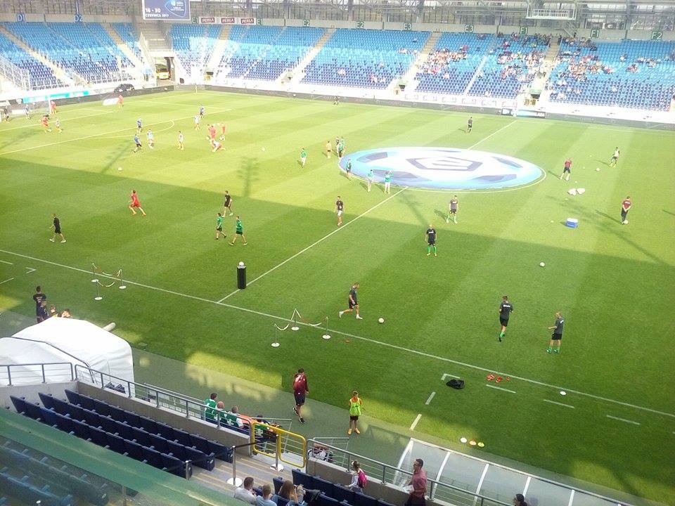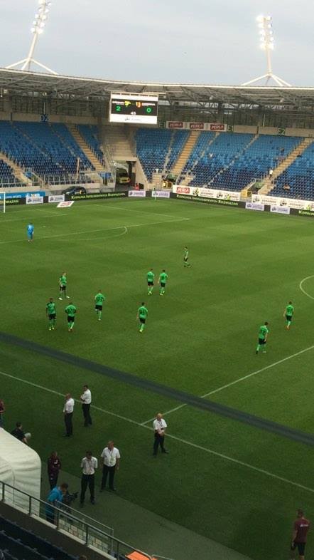 Teraz Dejmek wziął się za wyprowadzenie piłki. I Czech bardzo dobrze podawał do Sekulskiego. Niestety, cofamy piłkę na połowę. Nie jesteśmy w stanie przesunąć się pod pole karne rywala.