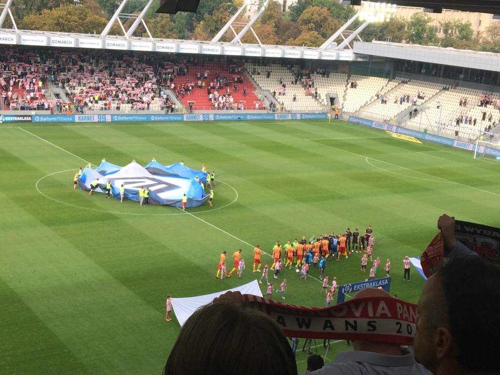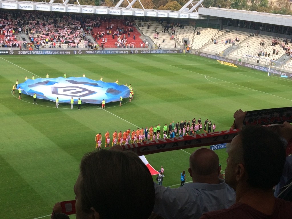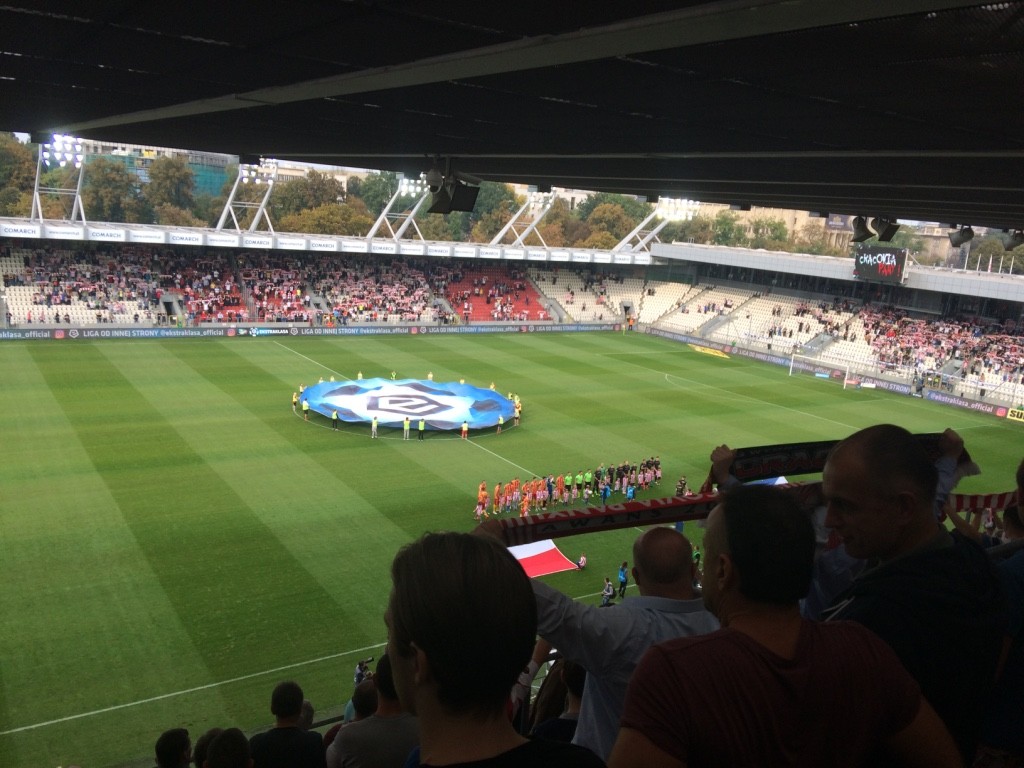 W Krakowie są też już nasi kibice, jest ich około pięciuset. Wiemy też, że doszło do drobnych starć z służbami porządkowymi w autobusie wiozącym naszych fanów do "Grodu Kraka". Fani z Kielc odpalili w nim racę, co zmusiło policję do interwencji.