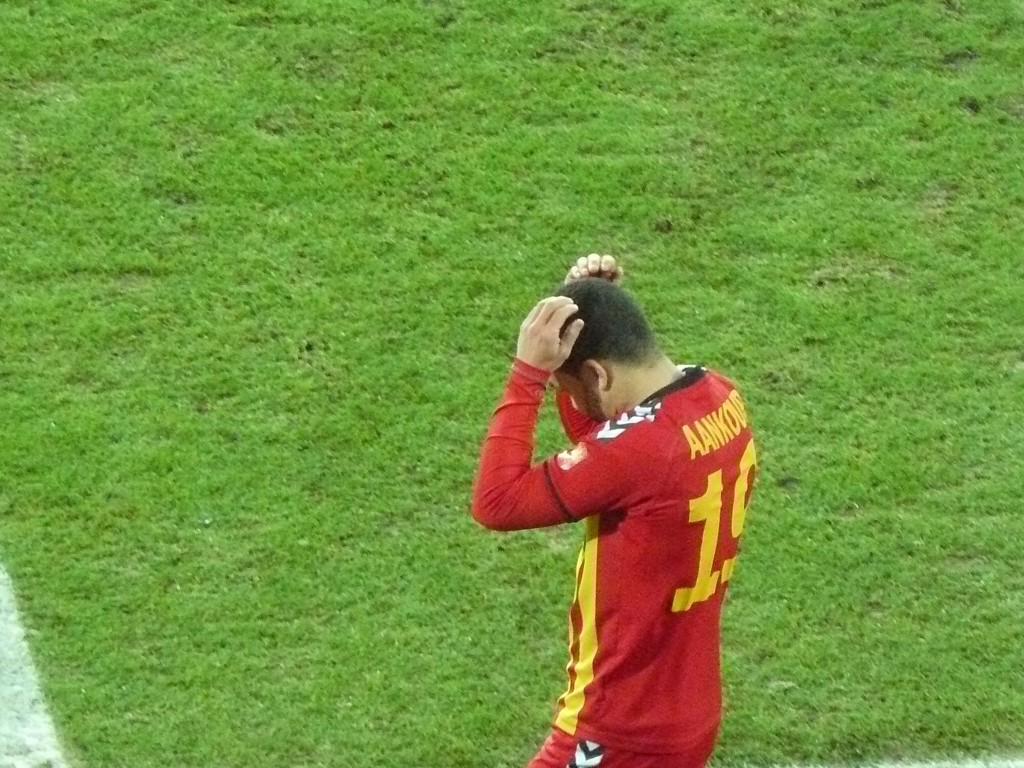Rakels znów dośrodkowuje w pole karne, ale tam nie było nikogo. Całe szczęście. Koniec I połowy. Złej, bardzo złej. Dla nas.