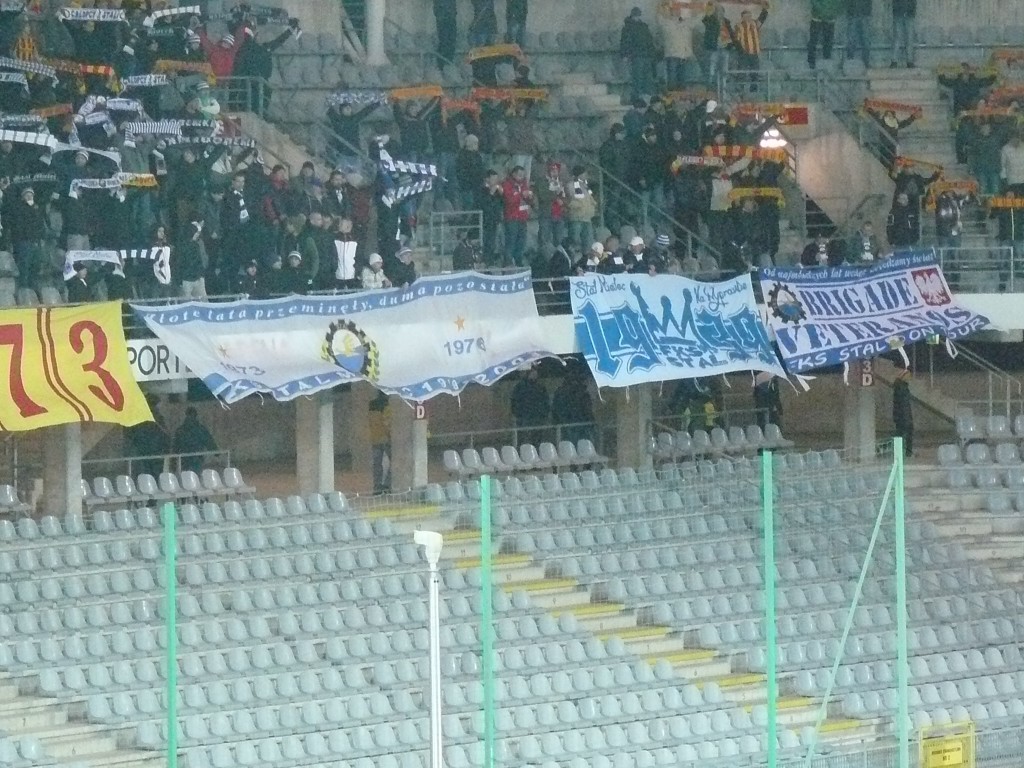 Na stadionie zimno, na trybunach głośno. Do Kielc przyjechali też kibice Stali Mielec: