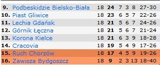 Korona ma cztery punkty przewagi nad Ruchem, więc mimo wszystko nie ma zagrożenie, że zimę spędzimy w strefie spadkowej. To plus. Minus - z taką grą, i dwoma porażkami na koniec, trudno o dobre humory do wiosny.