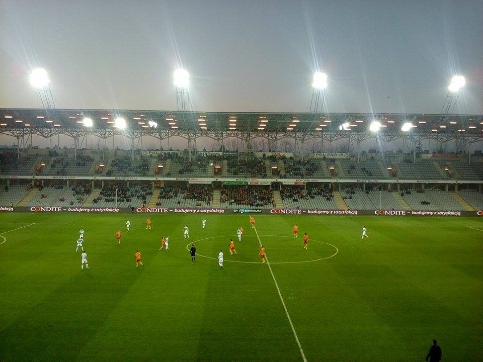 Nudniejszy fragment gry na Kolporter Arenie, liczymy na więcej okazji podbramkowych.