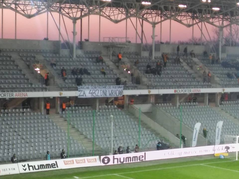 Odnośnie transparentu: prawdopodobnie chodzi o to, że za 482 dni kończą się zakazy stadionowe dla sporej grupy kibiców kieleckiej Korony.