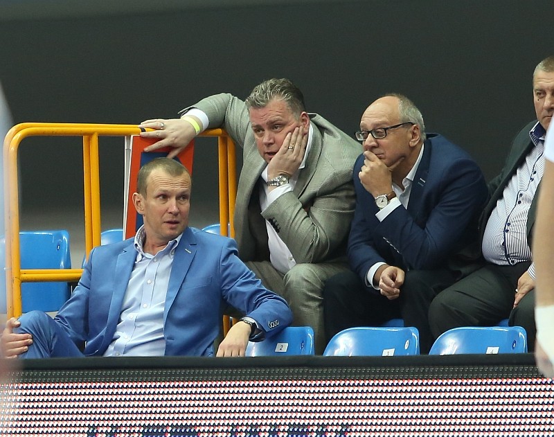 Zawodnicy obu ekip już w szatniach. A tym czasem trwa licytacja koszulki Piotrka Chrapkowskiego.