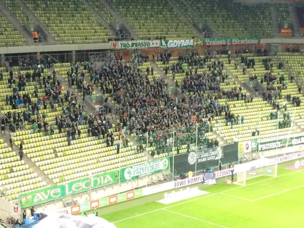 No i ironiczna "feta" na sektorach Lechii. Naszych kibiców oczywiście nie ma na stadionie - wszystko efektem zakazu wyjazdowego.