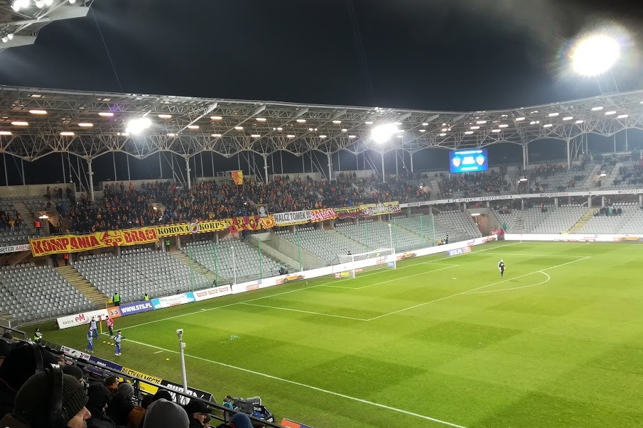 Dzień dobry Kielce! Kłaniamy się nisko, jesteśmy już na Kolporter Arenie, ale jeszcze "grzejemy się" (tylko bez skojarzeń) we wnętrzach stadionu. Zimny, mroźny dzień dzisiaj, więc pisanie dzisiaj nie będzie należało do najprostszych zadań. Ale postaramy się, by nasza relacja była dla Was jak najciekawsza.