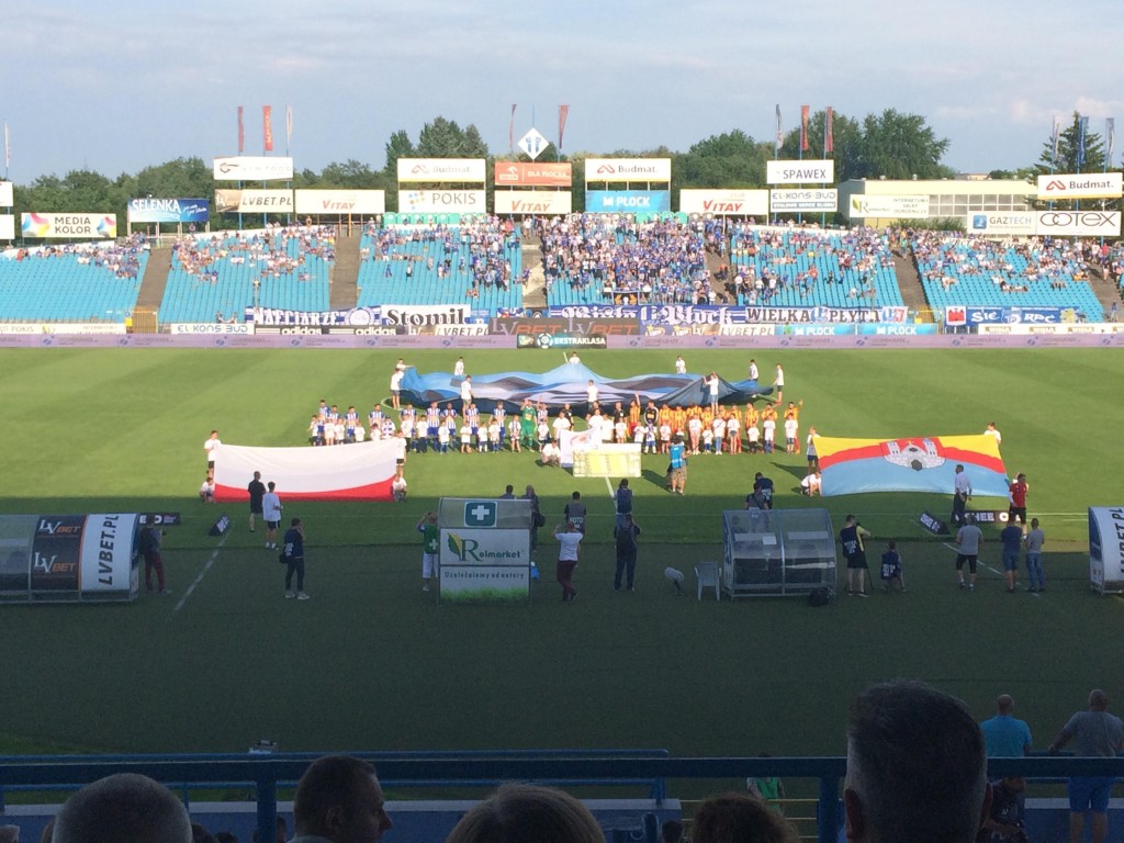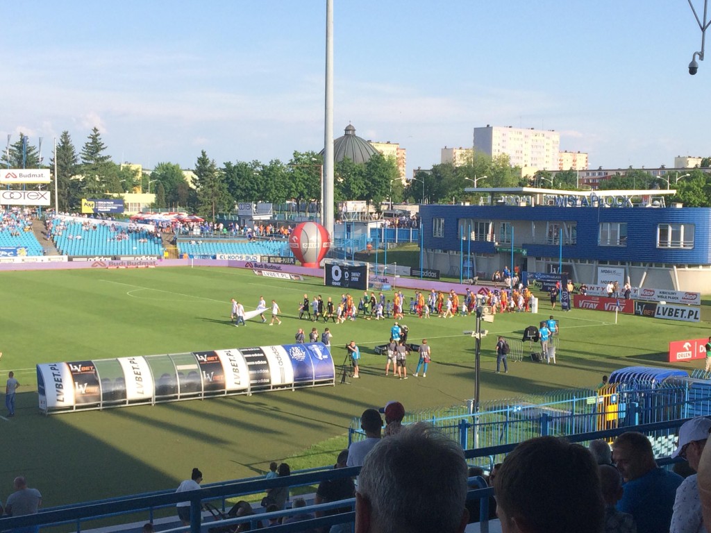 A oczy fanów kieleckiego sportu dzisiaj zwrócone są nie tylko na to, co będzie się działo na murawie w Płocku. PGE VIVE Kielce stanie bowiem przed szansą zdobycia swojego pierwszego w tym roku trofeum. Podopieczni Talanta Dujszebajewa w Kaliszu zagrają w finale Pucharu Polski. Rywalem żółto-biało-niebieskiej drużyny będą Azoty Puławy. A skoro temat "szczypiorniaka" i nasza obecność w Płocku, to trudno nie pokazać Wam widoku, jaki mamy z trybun stadionu.