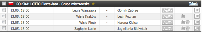 Przedostatnia ligowa kolejka, więc dzisiaj spoglądać też będziemy na inne stadiony. Jeszcze dzisiaj bowiem możemy poznać tegorocznego Mistrza Polski. Sprawdźmy więc, co czeka nas dzisiaj - poza oczywiście starciem Korony z Wisłą Płock - na ligowych boiskach.