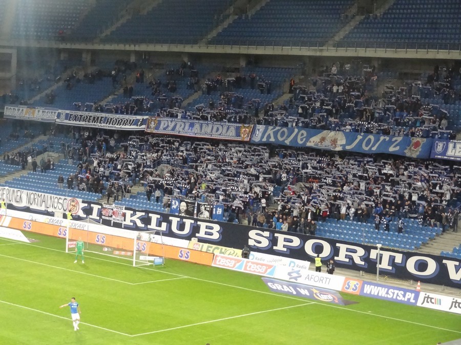 "Kocioł" nie jest dziś nabity do ostatniego miejsca, ale kibice cały czas pomagają swoim zawodnikom. Głośny doping lechitów trwa od pierwszej minuty spotkania.
