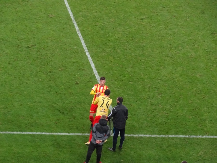 Korona nie załamała się stratą bramki i konsekwentnie szuka okazji do wyrównania. Walczył o piłkę Janjić, ale sfaulował rywala i tym samym grę wznowi z własnego pola karnego bramkarz gospodarzy.