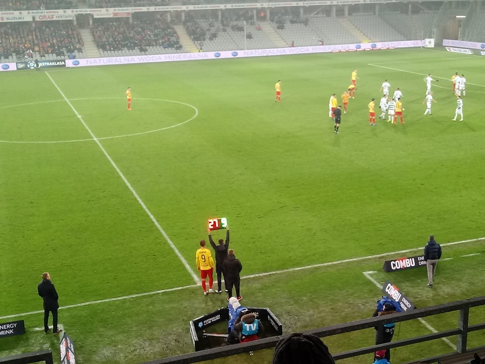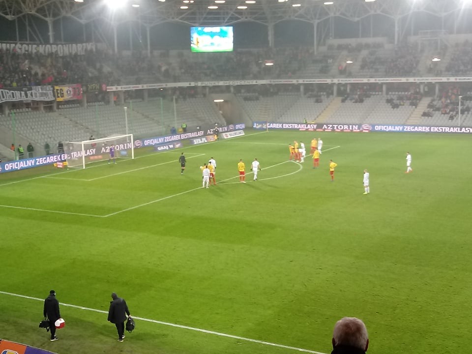 Korona miała jak dotąd dużo stałych fragmentów gry, z których wynikało czasami nieco więcej, czasami nieco mniej, ale rzadko naprawdę pachniało golem. Najbliżej szczęścia było po strzałach Cebuli i Petraka z dystansu. A Lechia? Odgryza się co kilka minut groźnymi akcjami, ale póki co w komplecie klasę pokazał Miśkiewicz.