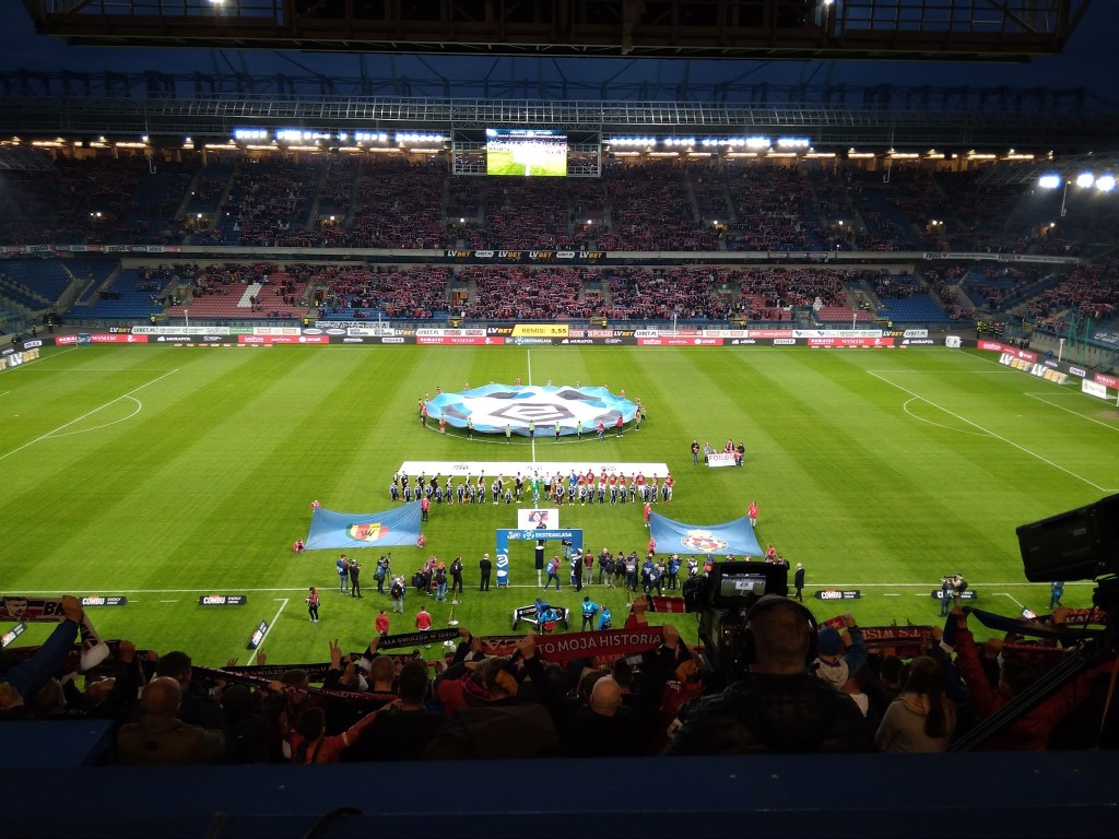 Tak stadion prezentował się jeszcze godzinę temu. Teraz wszystko gotowe jest już na rozpoczęcie spotkania.