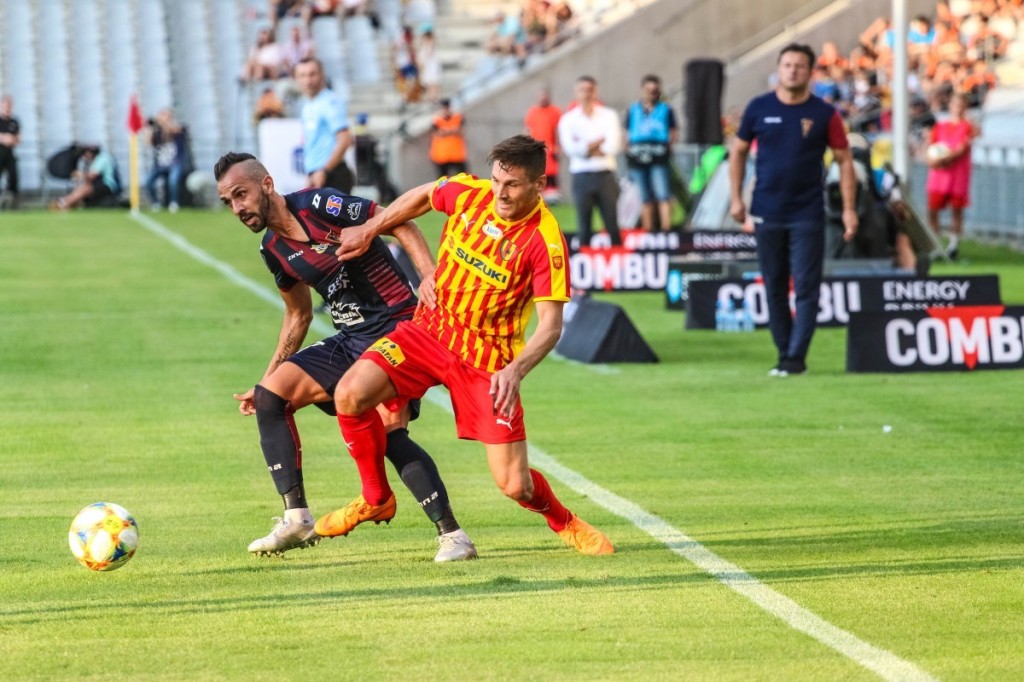 Spiridonović uderzył w doskonałej sytuacji, ale trafił swojego zawodnika w polu karnym i Korona zaczyna od bramki.