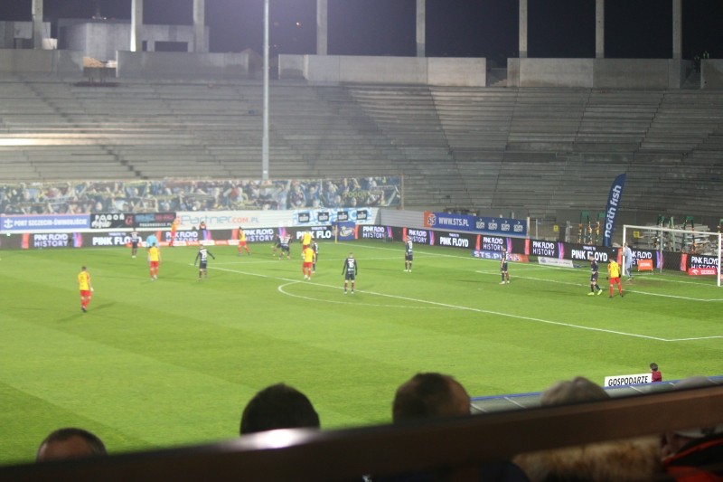 Niestety... Dwóch na jednego z bramkarzem, Pućko zdecydował się na samotne zakończenie tej akcji i nie dał rady. Słaby strzał, błyk Stipicy w bramce Pogoni i wciąż mamy 0:0. A mogliśmy prowadzić.