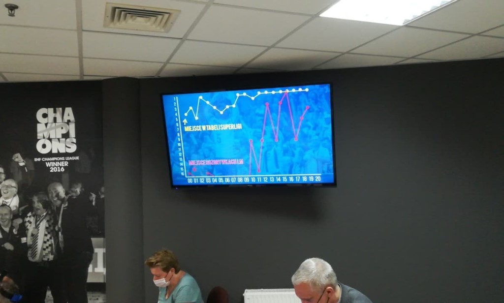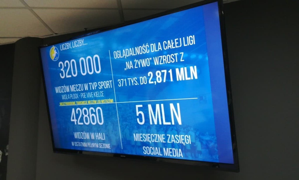 Na monitorze wyświetlana jest historia PGE VIVE Kielce.