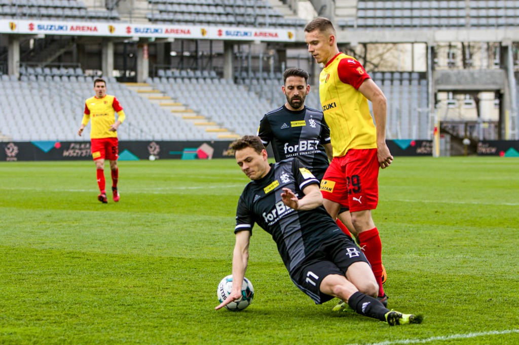 Jacek Podgórski dryblował pod chorągiewką, ale jego dośrodkowanie nie znalazło adresata.