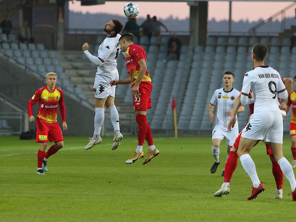 Błanik stojąc plecami do bramki dostał piłkę na wysokości pasa, próbował z tego uderzyć przewrotką ale nie udało się.