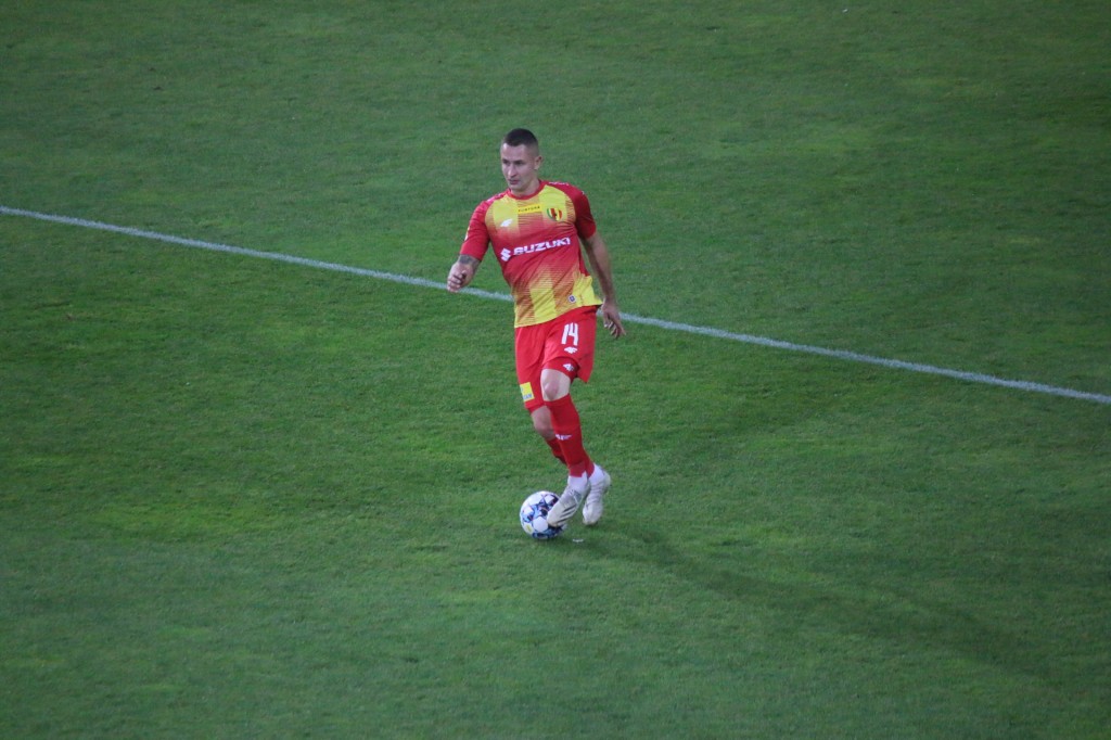 futbolówka zawisła w powietrzu. Przebijanka doprowadziła do kontry kieleckiego zespołu, ale Sierpina niedokładnie rozprowadzał na skrzydle i skończyło się na aucie dla gości.