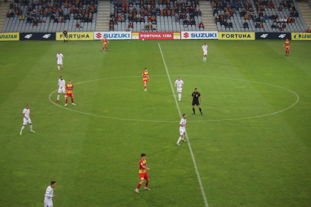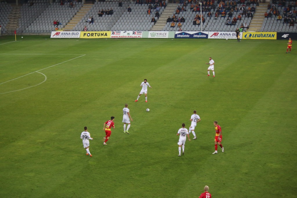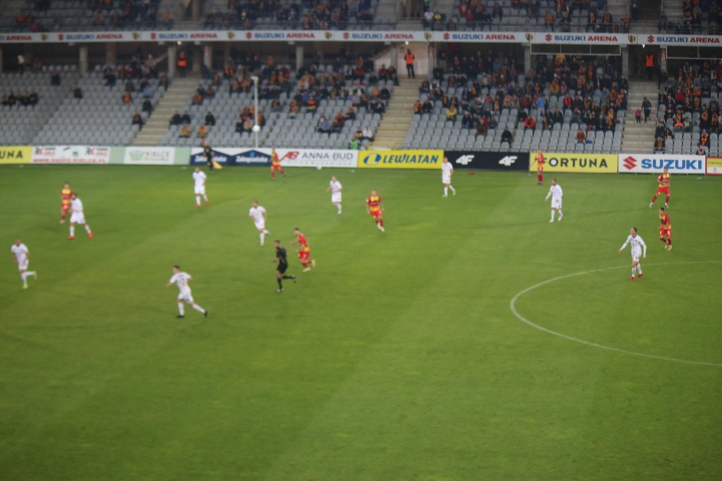 Malarczyk szybko zabrał mu piłkę i zażegnał niebezpieczeństwo. Było blisko, a zaraz mielibyśmy dramat. Za chwilę uderzenie w kierunku bramki Forenca ale kielecki bramkarz broni. To gorszy moment żółto-czerwonych w tym momencie. No i Koj - tak dobremu zawodnikowi aż nie wypada popełniać takich baboli :)