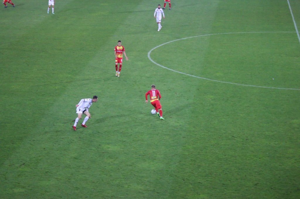 Chrobry przechwycił piłkę i próbuje kontrować, ale Korona szybko wraca do prowadzenia piłki. Będzie to zacięty mecz. Przynajmniej teraz mamy takie wrażenie.