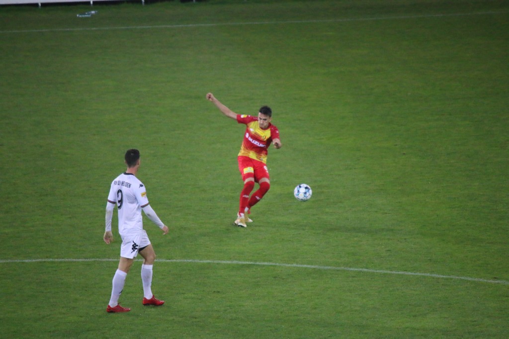 Uderzenie z tym, że niecelne oddał Łukowski. I to byłoby na tyle jeśli chodzi o strzeleckie sytuacje. Jest trochę walenia głową w mur. Brakuje płynności w grze Korony Kielce.