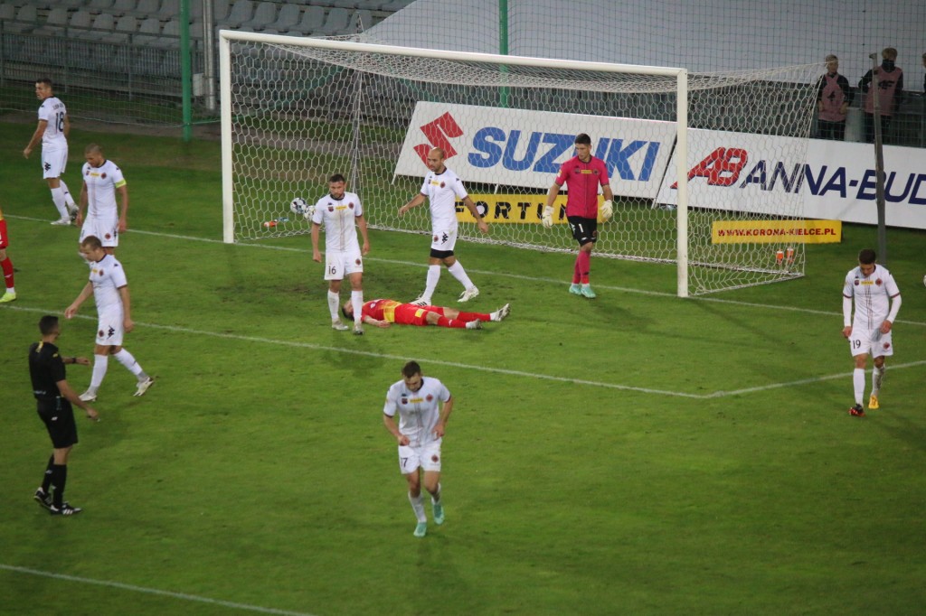 Korona zaczyna połowę od... straty bramki! Tak jest! Co dziś kielczanie wyprawiają w defensywie, to coś przerażającego. Piła do niepilnowanego Heidena, ten miał dużo czasu. Ustawił sobie piłkę, strzelił, Forenc bez szans...